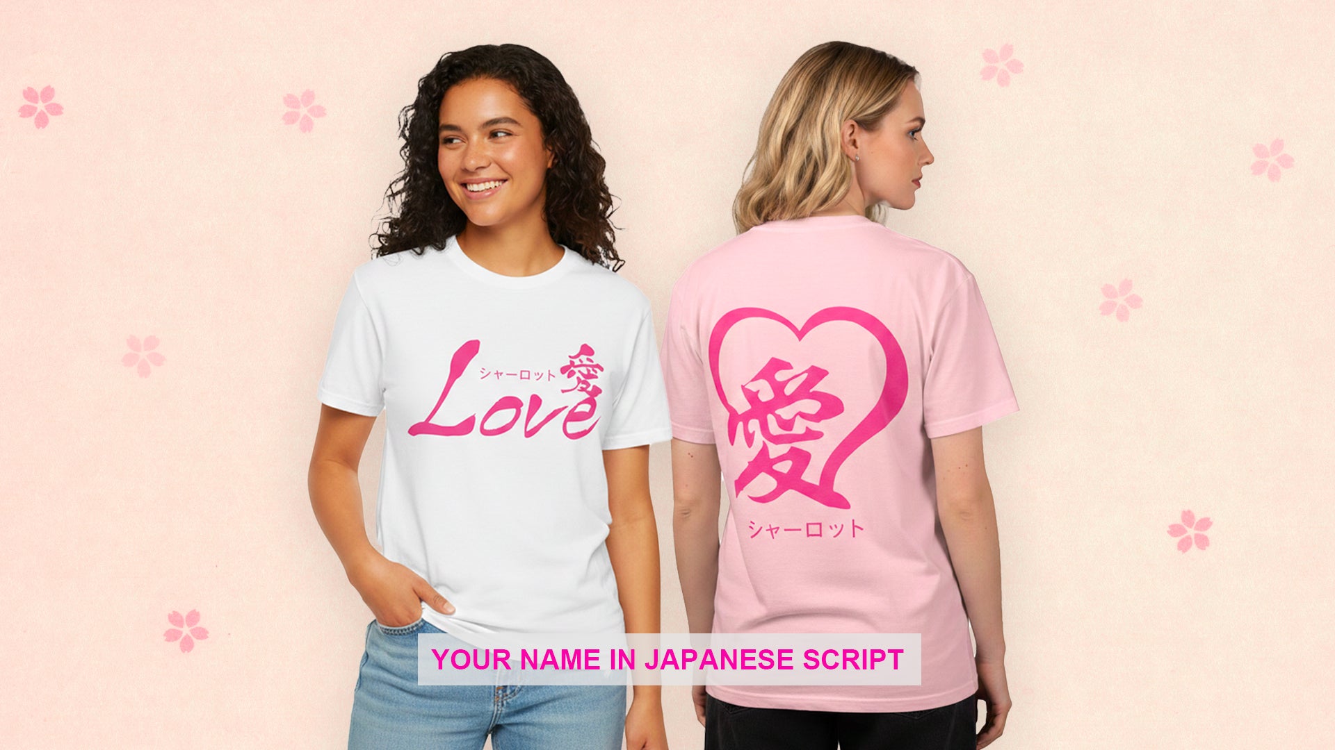 Customizable T-shirts featuring your name in Japanese!